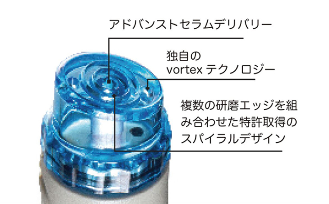 従来のピーリングとは違い、独自技術のトルネード水流と吸引で、古い角質や皮脂、黒ずみ、角栓などを軟化させながらピーリング、肌の再生を促します。